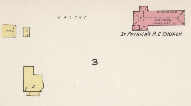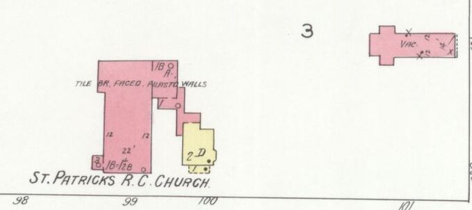 By 1921, there were 480 people who were in the parish and the church and its property was valued at $15,000. However, with so many people, Father M.J. McEvoy and other church leaders felt it was time to build a new church. On August 13, 1922, the cornerstone for the new church was laid and in October, the new church was ready for Sunday service. With the exception of rare use, the old church sat vacant. With no reason for upkeep, the once proud floors and ceiling became dilapidated. Also, many of the pretty stained glass windows broke, which led to birds flying in and out of the building freely. Ultimately, it was in such poor shape that many feared that the city might condemn the building, which led to its being razed. After it was taken down, the land was leveled and added to the St. Patrick’s Cemetery. Even after the building was long removed, by giving its land to its parishioners, the old church still found a way to serve its people.