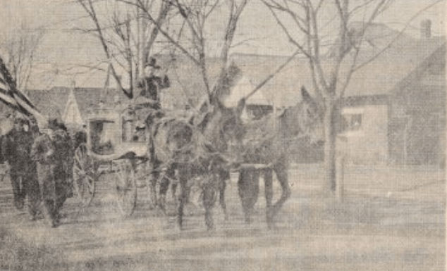 News of the peace settlement first reached McHenry, when William Pries, proprietor of the Centerville meat market, received word from Chicago at about two in the morning. Mr. Pries tried getting hold of several people to spread the news, but to no avail. He finally got hold of J. E. Pufahl, superintendent of the local Bordon’s factory. Pufahl and the night watchman were able to get the boilers up and running to use the steam whistle to alert the town. However, this didn’t happen until 4 A.M. Soon after the Borden factory’s announcement, church bells joined in the chorus.