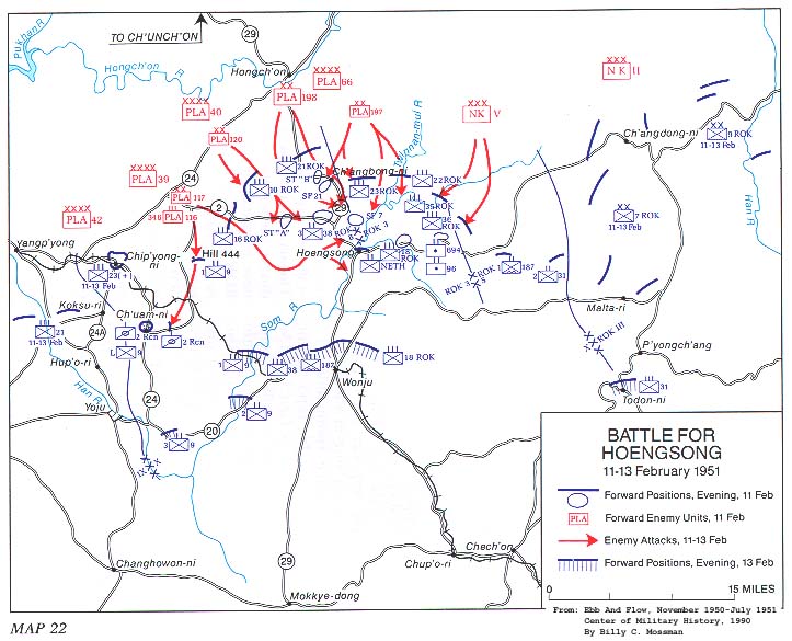 - U.S. Army. (2001). Chapter XIV: The Battle for Hoengsong. Retrieved November 3, 2020, from https://history.army.mil/books/korea/ebb/ch14.htm