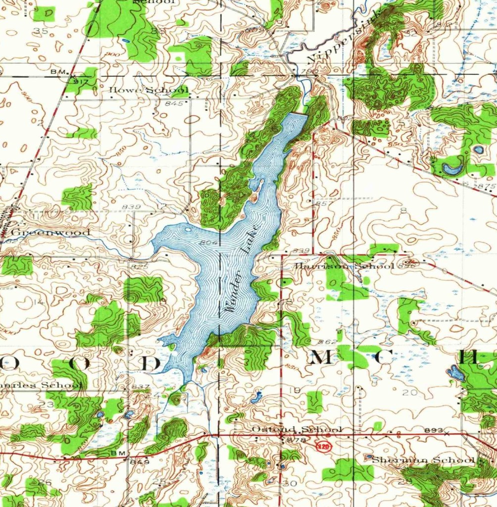 Jones & Winter purchased 1642 acres of farmland with 750 acres set up to contain the lake itself. Farms were purchased from the following families: the Howes, Harrisons, Merchants, Barnards, Halls, Klintworths, Garrisons, and Hancocks. The lake itself would mainly sit on former Garrison, Hancock, and Harrison farms. Wonder Lake would be run from the Nippersink to the north starting at the area right by the Barnard Mill landmark. It would run about three and three-fourths miles south until a quarter mile north of Route 20, Route 120 today. It would be about 1 mile across from east and west, and depending on the location, would be from seven to 15 feet deep. It would also feature, three wooded islands. The Nippersink Creek, and several other smaller streams, would feed the lake and a dam would hold the water back. In the construction of Wonder Lake the dam would be the key component because, with the dam, the lake couldn’t happen.