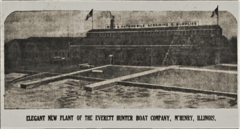 - “E. Hunter of the Hunter-Weckler Boat Company” The McHenry Plaindealer. (McHenry, IL) 10 Oct 1907, 1. Newspapers.com. Web. 9 Feb 2021.