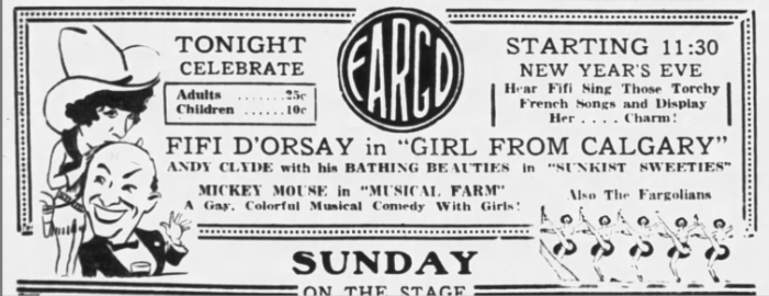 On Saturday, June 10, 1933, the Fox brought out a famous Hollywood actress to be the main attraction for the evening. Fifi D’Orsay was famous for playing the French flirt and worked with some very famous actors, such as Will Rogers, Douglas Fairbanks, and James Cagney. Interestingly, Fifi was French….French Canadian and was born Marie-Rose Angelina Yvonne Lussier in 1904. She took the name “Fifi” from a director and “D’Orsay” from a perfume that was popular at the time. Oddly enough, some promotions had her down as the “Girl From Calgary.” She was a talented actress and was regarded as a very entertaining singer and skilled dancer. In 1933, Fifi had a traveling orchestra and went on tour, and was set to perform around the country. When she performed at the Fox there was a huge crowd and Mademoiselle D’Orsay was great on stage.