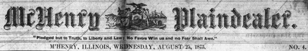 - “The Journal Suspends”. The McHenry Plaindealer. (McHenry, IL) 8 Mar 1900, 1. Newspapers.com. Web. 5 Feb 2023.