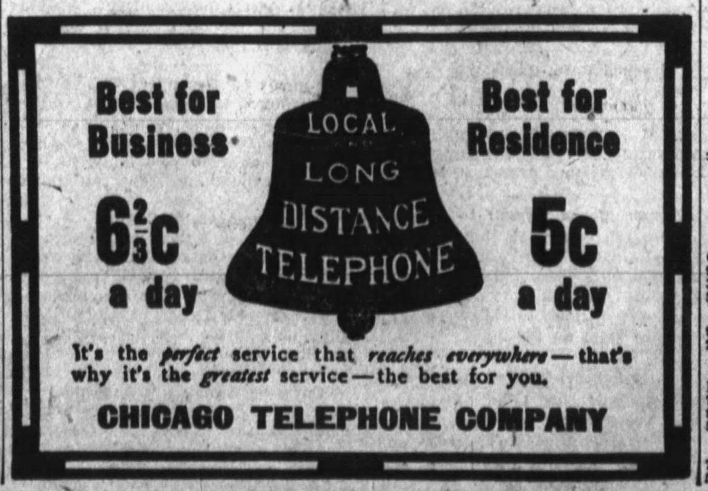 - “The Chicago Telephone Company” The McHenry Plaindealer. (McHenry, IL) 24 Aug 1898, 5. Newspapers.com. Web. 2 Mar 2024.